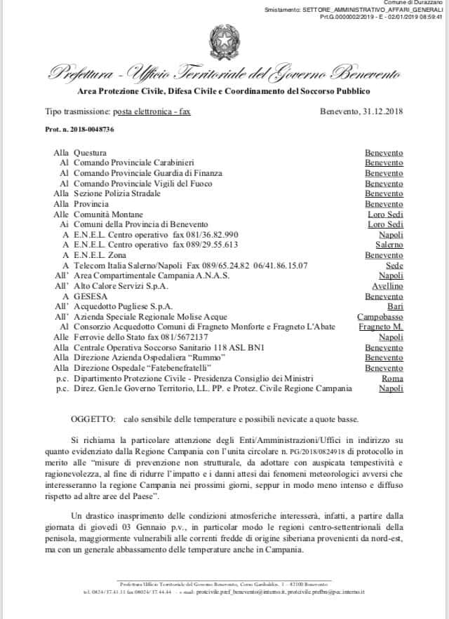 "Gelo e possibili nevicate da GIOVEDÌ 3 Gennaio. AVVISO Protezione civile"