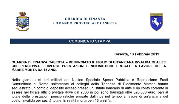Questo il comunicato inviatoci dal Comando Provinciale della Guardia di Finanza di Caserta.