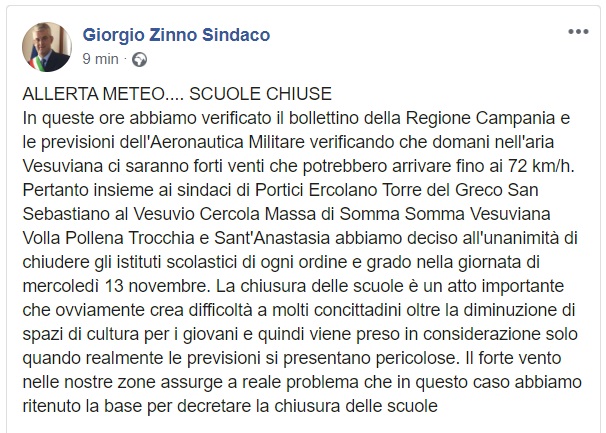 Questo quanto apprendiamo dal Sindaco di San Giorgio a Cremano