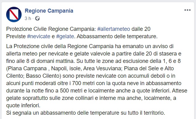 Questo quanto comunicato dalla Regione Campania