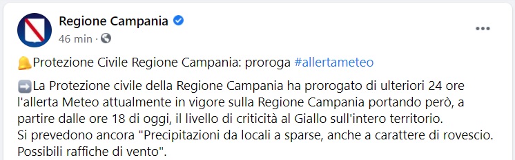 Questo quanto pubblicato sulla pagina fb della Regione Campania
