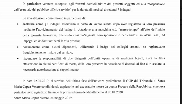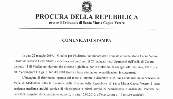 Questo il comunicato inviatoci dalla Procura della Repubblica presso il Tribunale di Santa Maria Capua Vetere.
