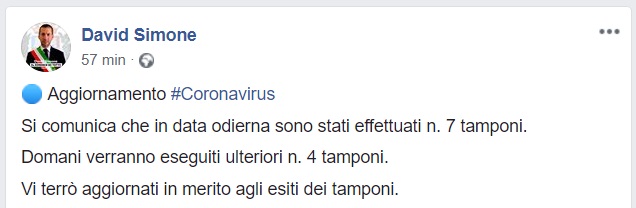 Questo quanto comunicato sul proprio profilo facebook dal Sindaco di Conca della Campania