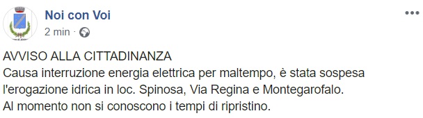 Questo quanto apparso sulla pagina Facebook "Noi con Voi":