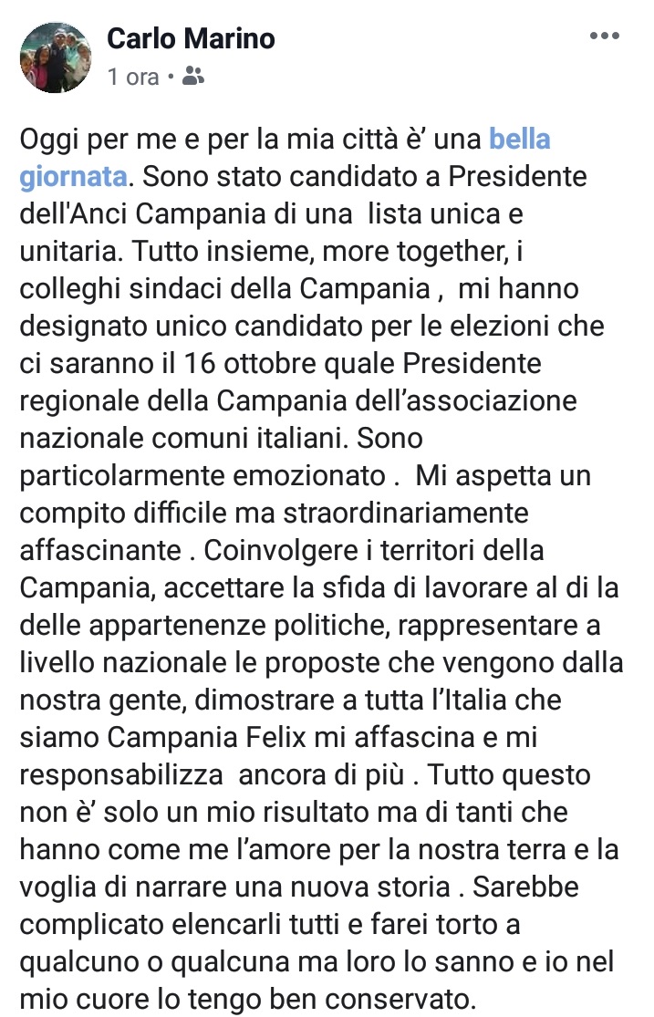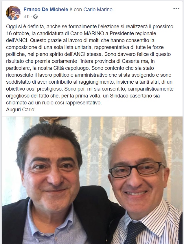 Questo quanto comunicato dal Sindaco Carlo Marino e dal Vicesindaco Franco De Michele