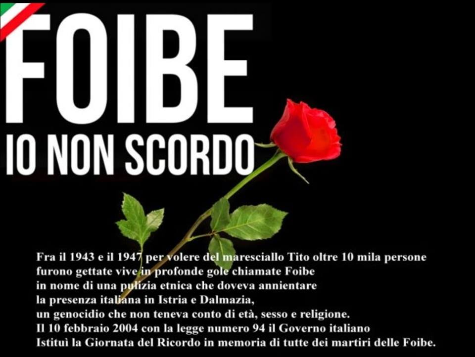 "Ricordare e non dimenticare. Le Foibe sono state la straziante tomba per tanti italiani. In questo giorno restituiamo onore a chi è stato barbaramente ucciso, a chi è stato esiliato lasciando beni e affetti, in nome di un odio etnico finito nell'oblio per troppo tempo.