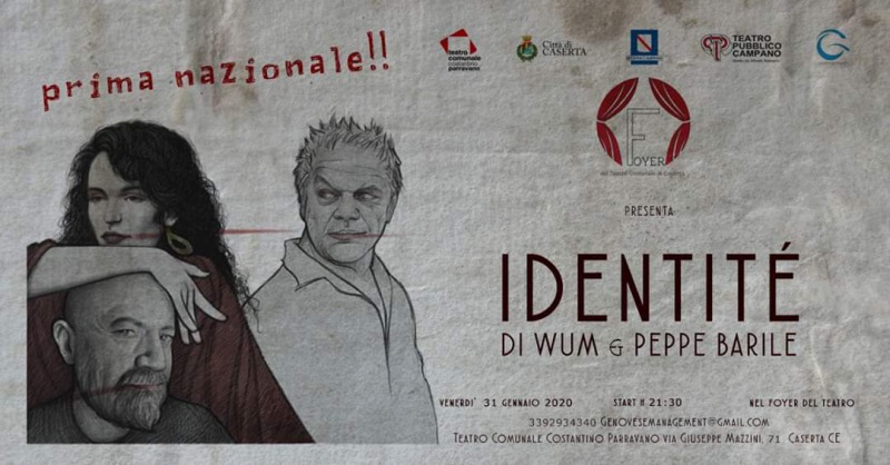 Venerdì 31 gennaio, a partire dalle ore 21:30 di sera, andrà in scena, al Teatro comunale di Caserta, sito in via Mazzini, l'opera teatrale 'Identitè' di Wum e Peppe Barile. Una Fabia contemporanea, ambientata tra il Medio Oriente e il Vesuvio. Il tutto si traduce in immagini vive, musiche e parole di intensità irripetibile. L'opera si sviluppa sul testo di Massimo D'Avanzo, illustrazioni e voce recitante invece, sono di Peppe Barile. Voce e danza sono di Carmen Famiglietti, e, le canzoni, sono composte ed eseguite dai WUM, indi, Massimo D'Avanzo e Carmen Famiglietti. Ricordiamo, che l'avvio di spettacolo, previsto per le 21:30, sarà preceduto, dall'ingresso apericena, previsto per le ore 20:30.