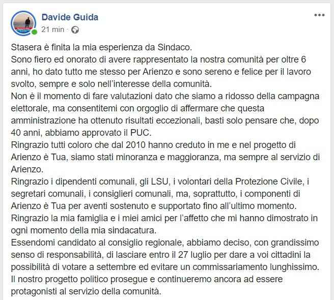 Questo quanto pubblicato da Davide Guida