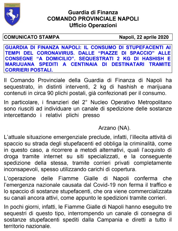 Pubblichiamo nota stampa Comando Provinciale GdF Napoli