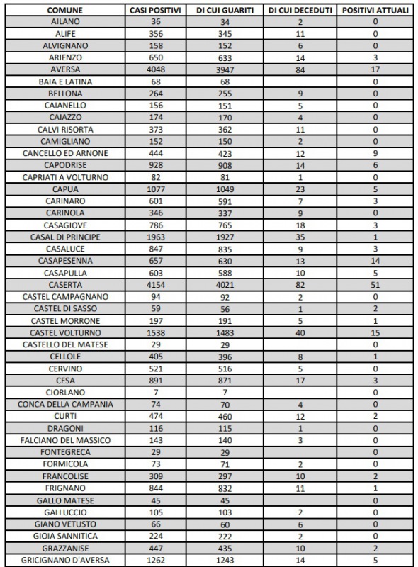 Questo quanto apprendiamo dall'ASL Caserta