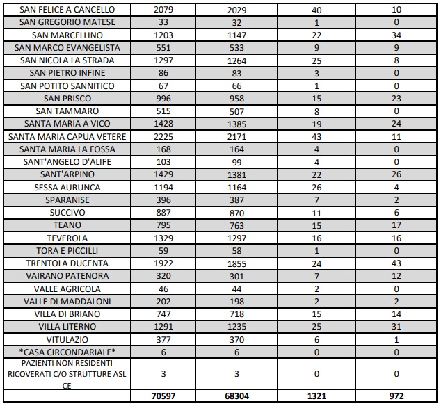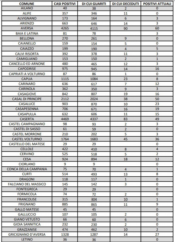 Questo quanto apprendiamo dall'ASL CE