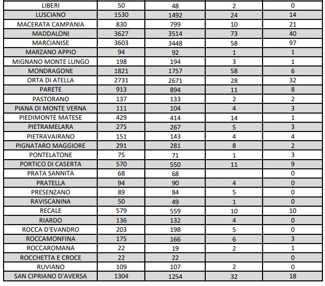 ASL CE. 63 NUOVI POSITIVI. A Marcianise 97 casi, seguono Aversa, C. di Principe e Caserta