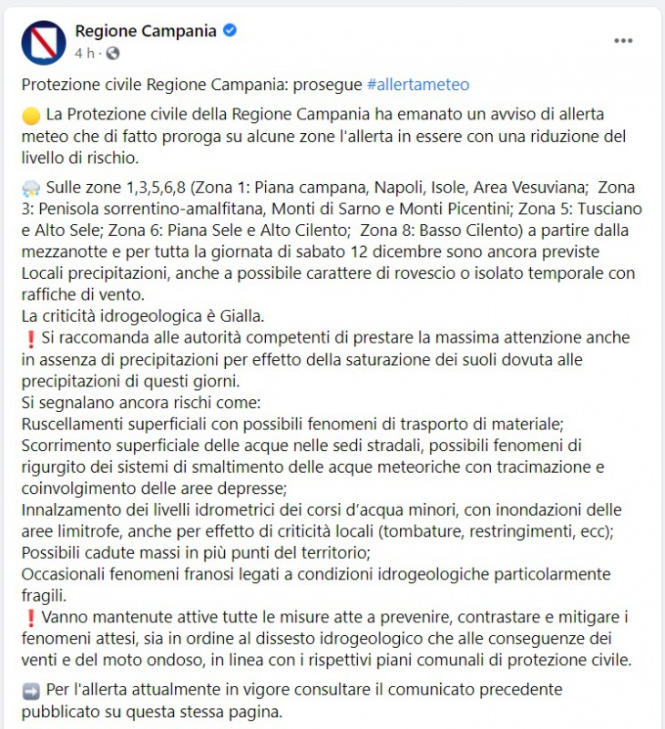 Questo quanto pubblicato sulla pagina fb della Regione Campania
