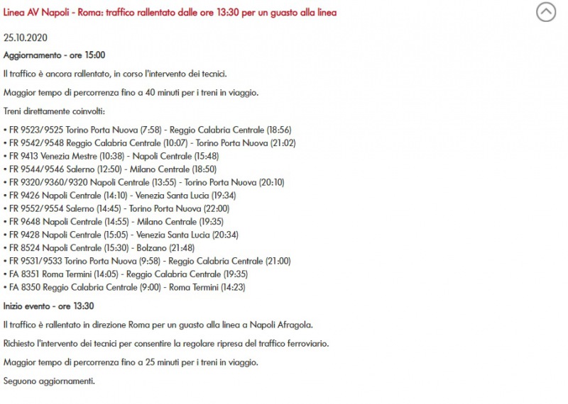 Questo quanto apprendiamo dal sito di Trenitalia: