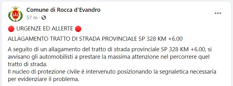 Questo quanto pubblicato sulla pagina fb del Comune di Rocca d'Evandro