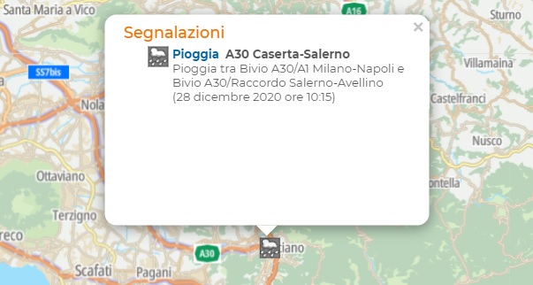 ATTENZIONE. Pioggia sull'A30 nei pressi di Mercato San Severino