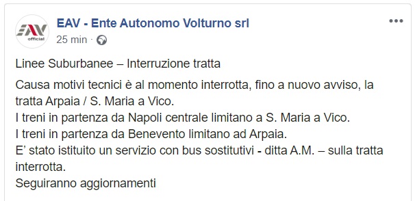 Questo quanto apprendiamo dalla pagina FB dell'EAV