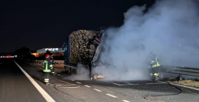 Questo parte del comunicato stampa diffuso dai Vigili del Fuoco: "Questa mattina, verso le ore 04:00, una squadra dei Vigili del Fuoco del Comando provinciale di Caserta, proveniente dalla sede Centrale, è intervenuta sull’autostrada A1 tra i caselli di Capua e Santa Maria Capua Vetere, al km 724,per un incendio che ha interessato un autotreno che, a causa di un guasto tecnico - si legge nel comuicato - era fermo in una piazzola di sosta. Al loro arrivo sul posto l'autotreno, trasportante legna, risultava incendiato nella parte posteriore ed il pronto intervento dei Vigili del Fuoco ha impedito che le fiamme si propagassero al resto del carico coinvolgendo tutto il veicolo. Sul posto , in supporto alla squadra per le operazioni di spegnimento, è intervenuta anche un autobotte dalla sede centrale del Comando visto che le fiamme si erano propagate anche alla vegetazione esterna alla carreggiata. Per fortuna - si legge ancora - vista l'ora, non ci sono stati disagi alla circolazione".