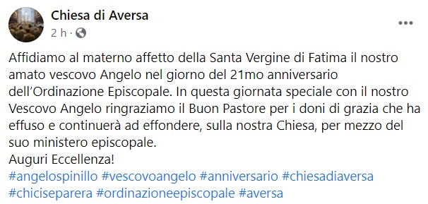 Questo quanto apprendiamo dalla pagina facebook della Chiesa di Aversa: