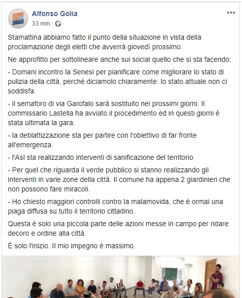 Questo quanto apprendiamo dalla paina FB di Alfonso Golia.