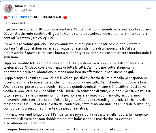 (Ruota il telefono per leggere il post Facebook)