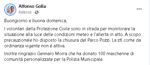 Lo apprendiamo dalla pagina Facebook del Sindaco di Aversa, Alfonso Golia.