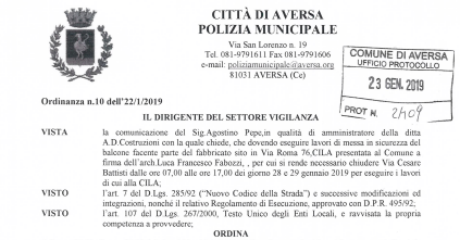 Lo apprendiamo dall'albo pretorio del Comune di Aversa:
