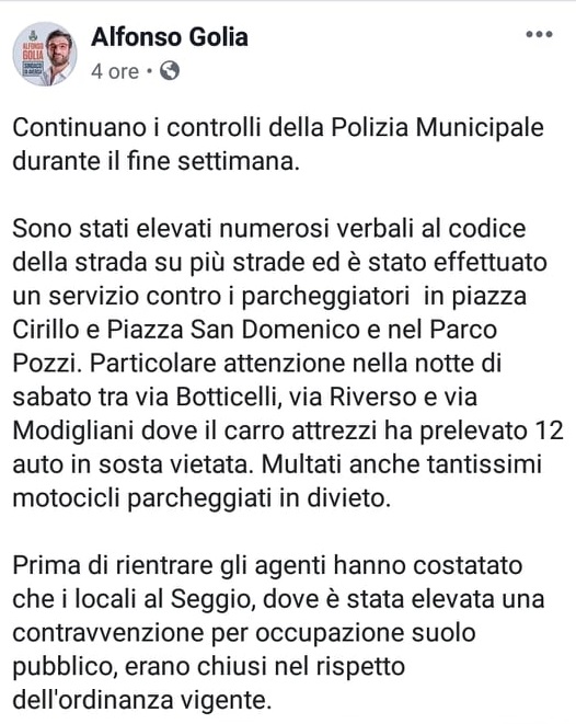 Questo quanto pubblicato su Facebook dal Sindaco di Aversa, Alfonso Golia: