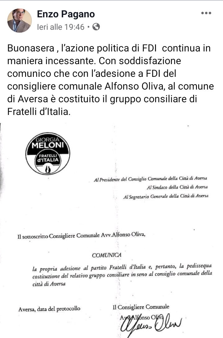 Questo quanto apprendiamo dalla pagina FB di Enzo Pagano