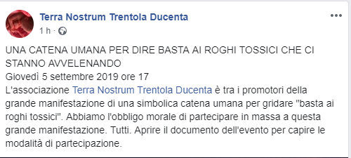 Questo il post pubblicato sulla pagina Facebook "Terra nostrum Trentola Ducenta" relativo alla manifestazione che si svolgerà ad Aversa il 5 settembre alle ore 17: