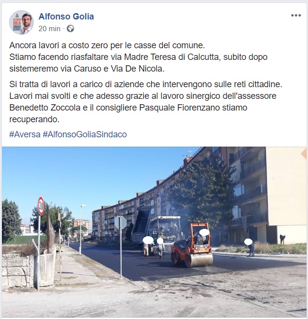 Questo quanto apprendiamo dalla pagina FB del Sindaco Golia