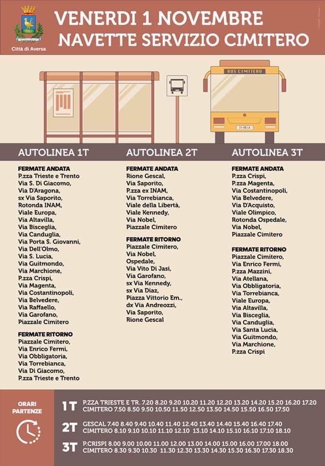 Questo il servizio navette per il Cimitero previsto l'1 novembre.