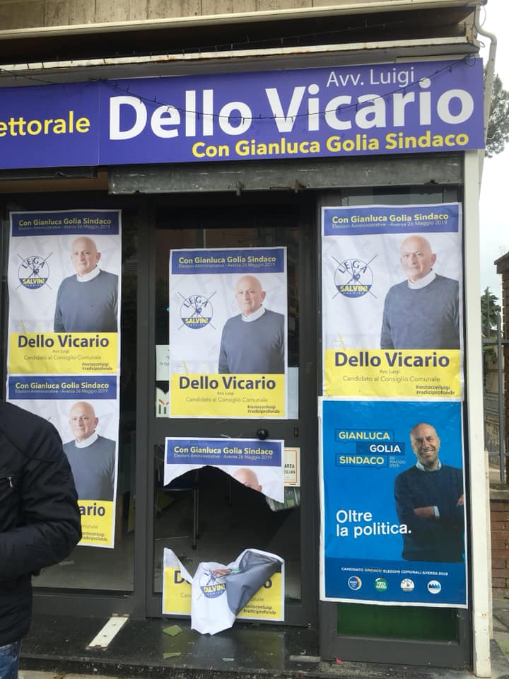 Altro atto di vandalismo nei confronti della Lega ad Aversa, dopo aver colpito la sede ellettorale del candidato consigliere Baldi, questa notte c'è stato un altro atto di vandalismo, sempre ad Aversa, sempre contro la Lega, questa volta nei confronti del candidato consigliere Luigi Dello Vicario.