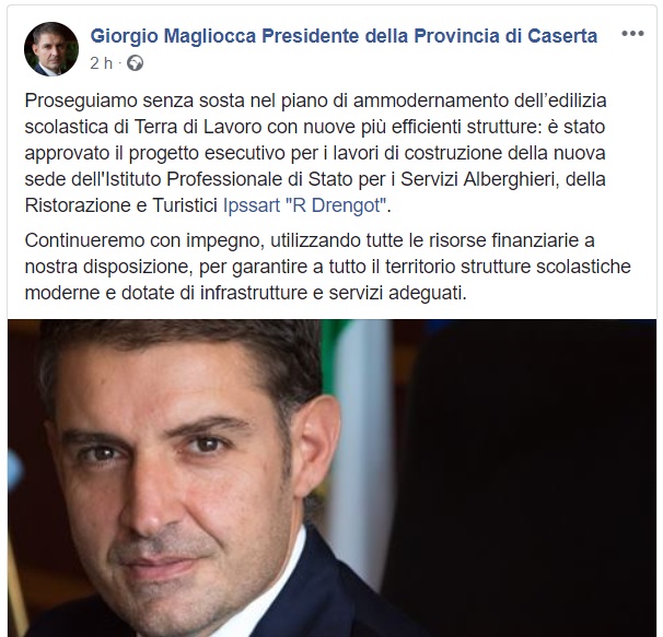 Questo quanto apprendiamo dal profilo Fb del Presidente della Provincia Giorgio Magliocca