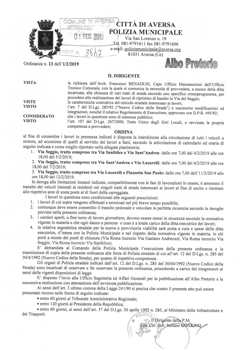 Questa l'ordinanza del Comune di Aversa. RUOTA IL TELEFONINO PER LEGGERE TUTTA l'ORDINANZA