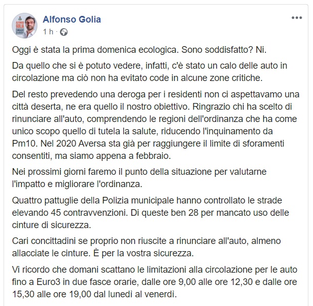 Questo quanto apprendiamo dalla pagina FB del Sindaco Golia