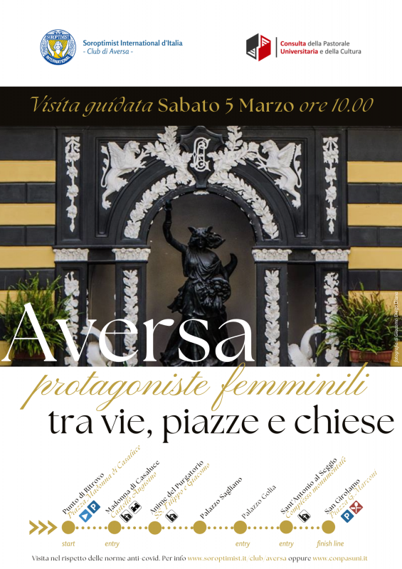 Questo il comunicato stampa diffuso dalla Consulta della Pastorale Universitaria e della Cultura di Aversa: "Sabato 5 marzo alle ore 10.00 – in vista della “Festa della Donna” – è prevista la visita guidata “Aversa (protagoniste femminili) tra vie, piazze e chiese” promossa dal Club di Aversa del Soroptimist International e dalla Consulta della Pastorale Universitaria della Diocesi di Aversa. Il tour, che - si legge nel comunicato - nel titolo parafrasa un famoso volume dello storico Lello Moscia, toccherà le chiese ed i palazzi più rappresentativi di Via Seggio ad Aversa partendo da Piazza Madonna di Casaluce (incrocio Via Roma-Via Seggio) fino ad arrivare a Piazza G. Marconi (già Piazza Mercato). A curare la visita guidata - si legge ancora - al patrimonio storico-artistico della Chiesa e dalla Città di Aversa sarà la Consulta della Pastorale Universitaria. Durante il percorso - recita ancora il comunicato - i partecipanti “incontreranno”, attraverso focus biografici curati dagli universitari, alcuni personaggi femminili protagonisti di rilevanti episodi storici aversani. I profili selezionati, sulla base della divisione in classi sociali tipica del periodo medievale e moderno (riferimento temporale su cui si fonda il tour), sono quelli di Lucrezia Scaglione (nobiltà o primo ceto), Maria Concetta Pirolo (clero o secondo ceto) e Francesca De Paola (borghesia o terzo ceto). Insieme a quest’ultime - prosegue il comunicato - anche altre protagoniste femminili – dalle claustrali Altrude de Rocca e Margherita di Sorrento alla regina Carolina Bonaparte – i partecipanti al percorso “Aversa (protagoniste femminili) tra vie, piazze e chiese” intrecceranno l’evoluzione urbanistica ed architettonica di Aversa con la tradizione ed il culto secolare di Maria SS. di Casaluce e la grottesca vicenda della regina Giovanna d’Angiò - si legge ancora - e dell’assassinio di suo marito Andrea d’Ungheria. La partecipazione - conclude il comunicato - è libera e gratuita. Per la sosta dei partecipanti sono consigliate due aree parcheggio: Piazza G. Marconi e Parcheggio Parco Pozzi".