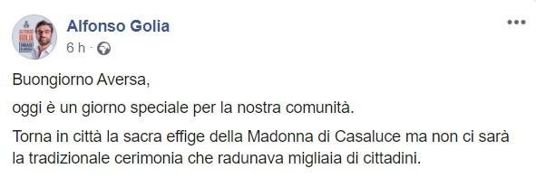 Questo quanto pubblicato sulla pagina facebook del Sindaco Golia: