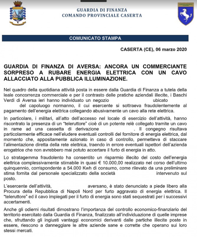 Pubblichiamo nota stampa del Comando Provinciale Guardia di Finanza Caserta