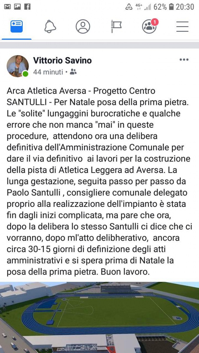Questo quanto pubblicato da Vittorio Savino, dirigente dell'Arca Atletica Aversa