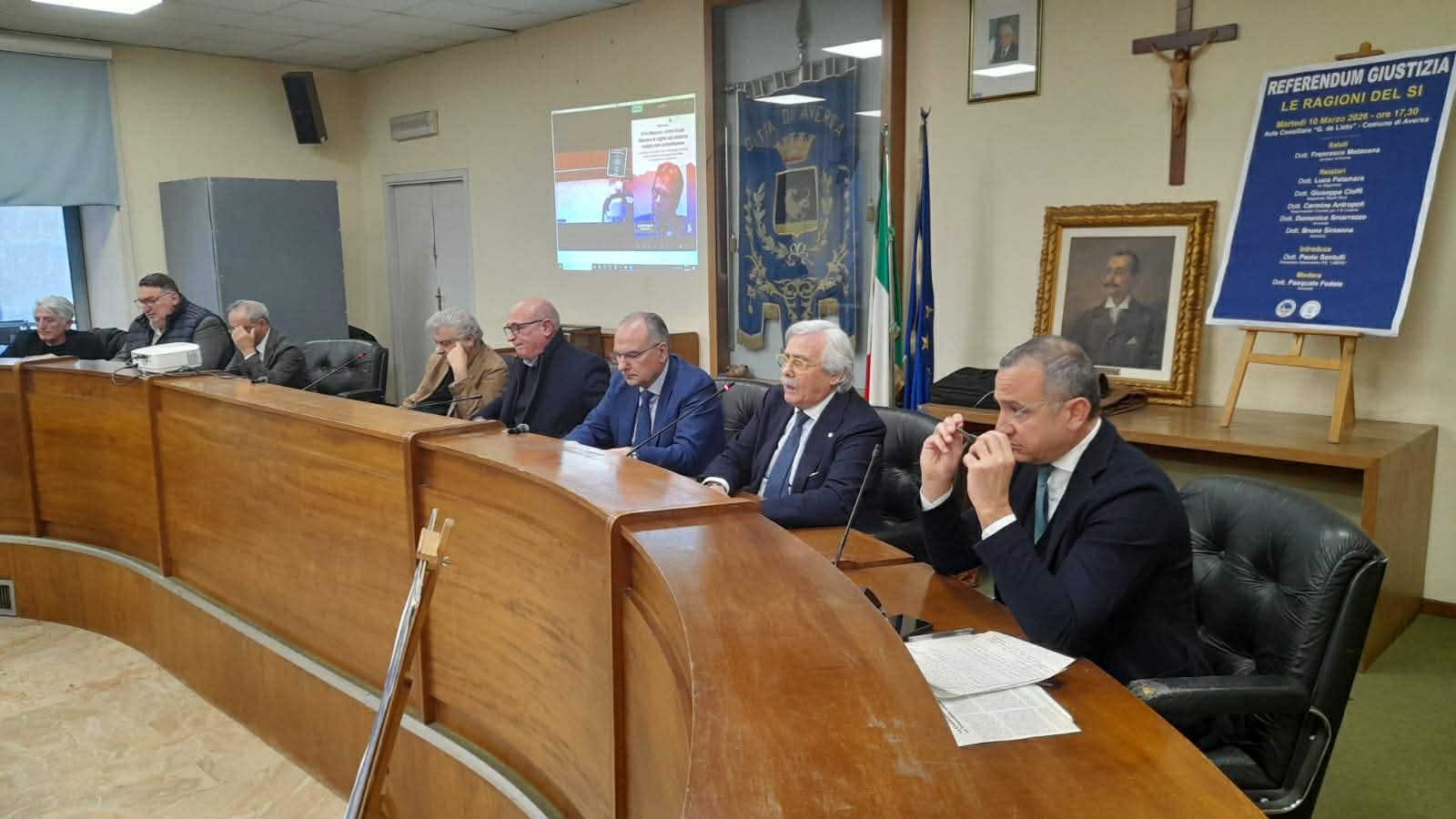 L'Osservatorio Politico Sociale Libero ha organizzato, presso la Sala Consiliare di Aversa, un incontro in vista del referendum del 22 e 23 Marzo. Aula gremita in ogni di posto per ascoltare magistrati, avvocati e professionisti. Presente, solo per i saluti il Sindaco Matacena. Relatori dell'incontro: Dott. Luca Palamara, ex Magistrato; Dott. Giuseppe Cioffi, Magistrato Napoli Nord; Dott. Carmine Antropoli, Responsabile Comitati per il Sì Caserta; Dott. Domenico Smarrazzo, avvocato; Dott. Bruno Simeone, avvocato. Organizzatore dell'evento l'On. Paolo Santulli, Presidente Osservatorio P.S. Libero. La moderazione è stata affidata al Dott. Pasquale Fedele, avvocato.