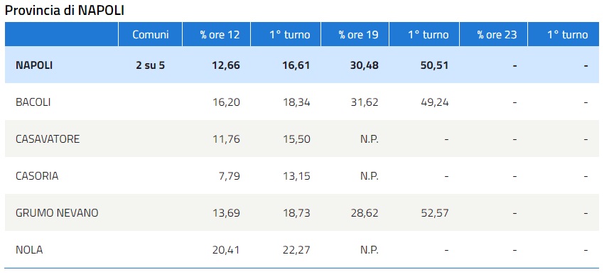 BACOLI-GRUMO NEVANO. Ballottaggio: affluenza ore 19 (DATI MINISTERO)
