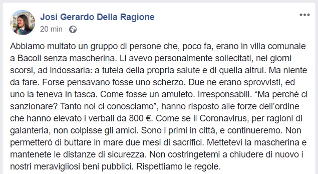 Questo quanto pubblicato dal Sindaco di Bacoli
