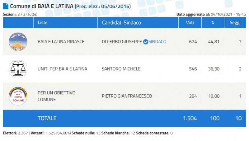 Concluso lo scrutinio a Baia e Latina, e Giuseppe Di Cerbo è stato eletto Sindaco.
