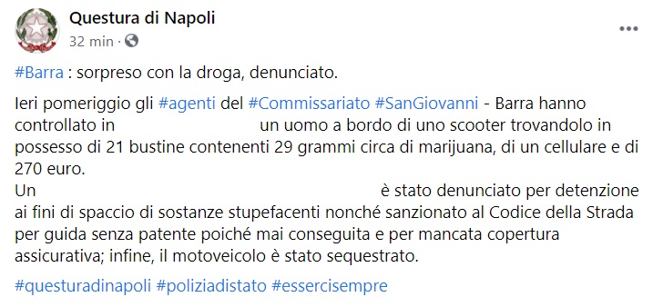 Queto parte di quanto pubblicato sulla pagina facebook della Questura di Napoli: