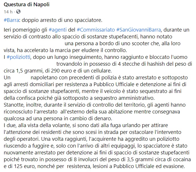 Questo quanto pubblicato sulla pagina facebook della Questura di Napoli