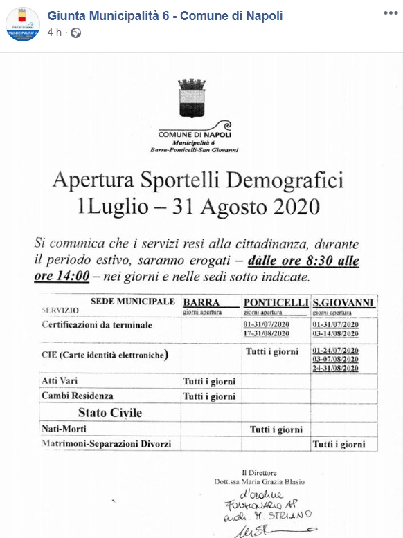 Questo quanto apprendiamo dalla pagina facebook della Municipalità 6: