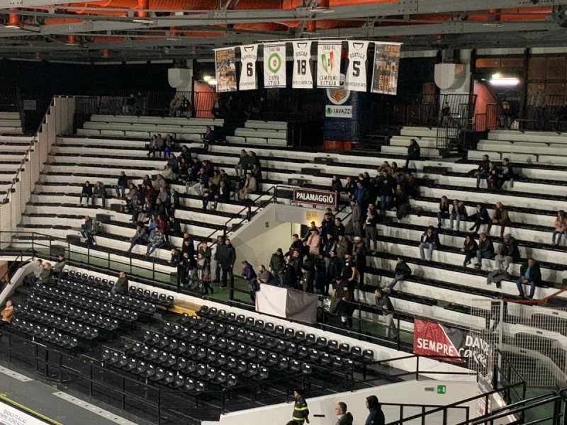 Nella decisiva partita in chiave salvezza contro Orzinuovi, è da registrare un numero sempre più esiguo di spettatori al PalaMaggiò. Non sappiamo ancora il dato preciso, ma le foto parlano piuttosto chiaro.
