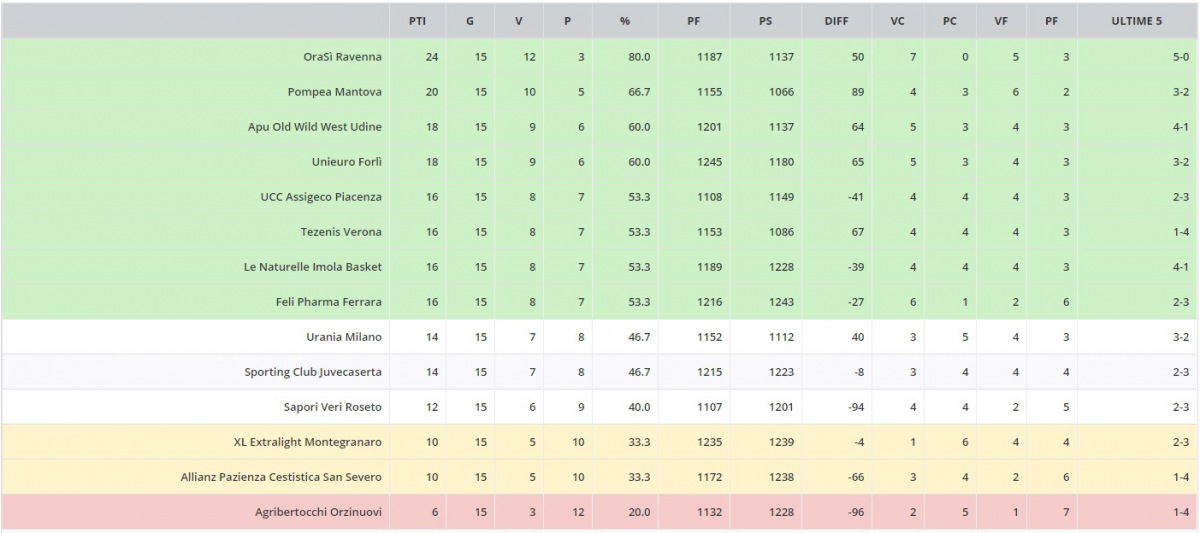 FONTE CLASSIFICA: LEGA NAZIONALE PALLACANESTRO