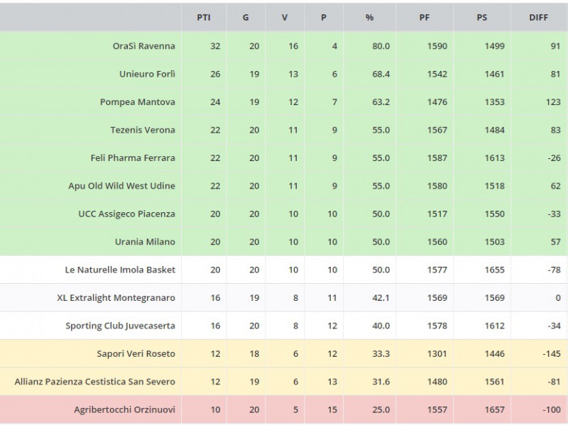 Questa la classifica del campionato di A2 girone Est della Juvecaserta